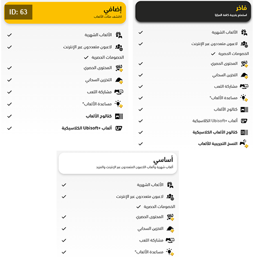 ⬤ كتالوج الألعاب ⬤ ألعاب Ubisoft+ الكلاسيكية ⬤ تتضمن عضوية PlayStation Plus إضافي أيضًا: ⬤ الألعاب الشهرية ⬤ اللاعبون المتعددون عبر الإنترنت ⬤ خصومات حصرية ⬤ مشاركة اللعب ⬤ مساعدة الألعاب ⬤ التخزين السحابي ⬤ المحتوى الحصري